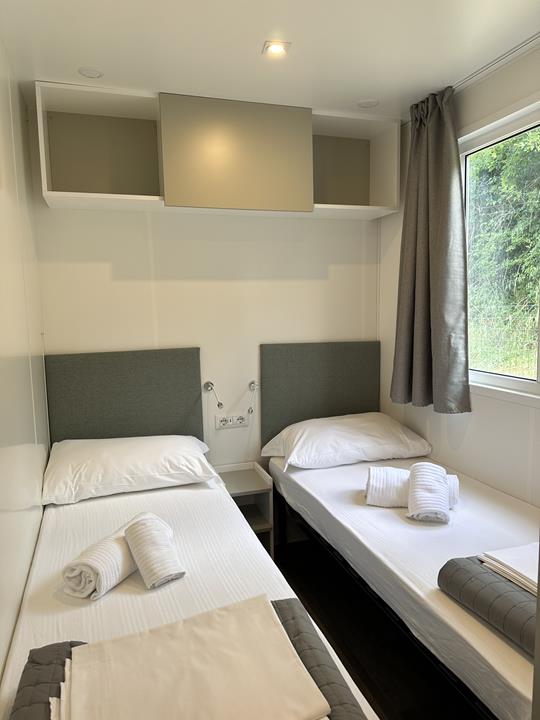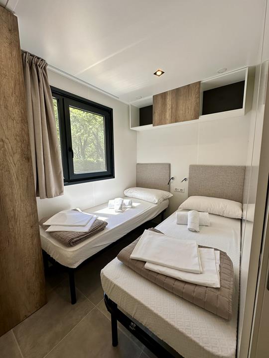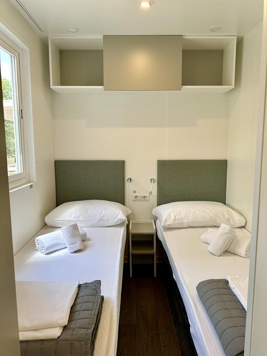 • Zona notte con due letti singoli (unibili per formare un letto matrimoniale su richiesta).