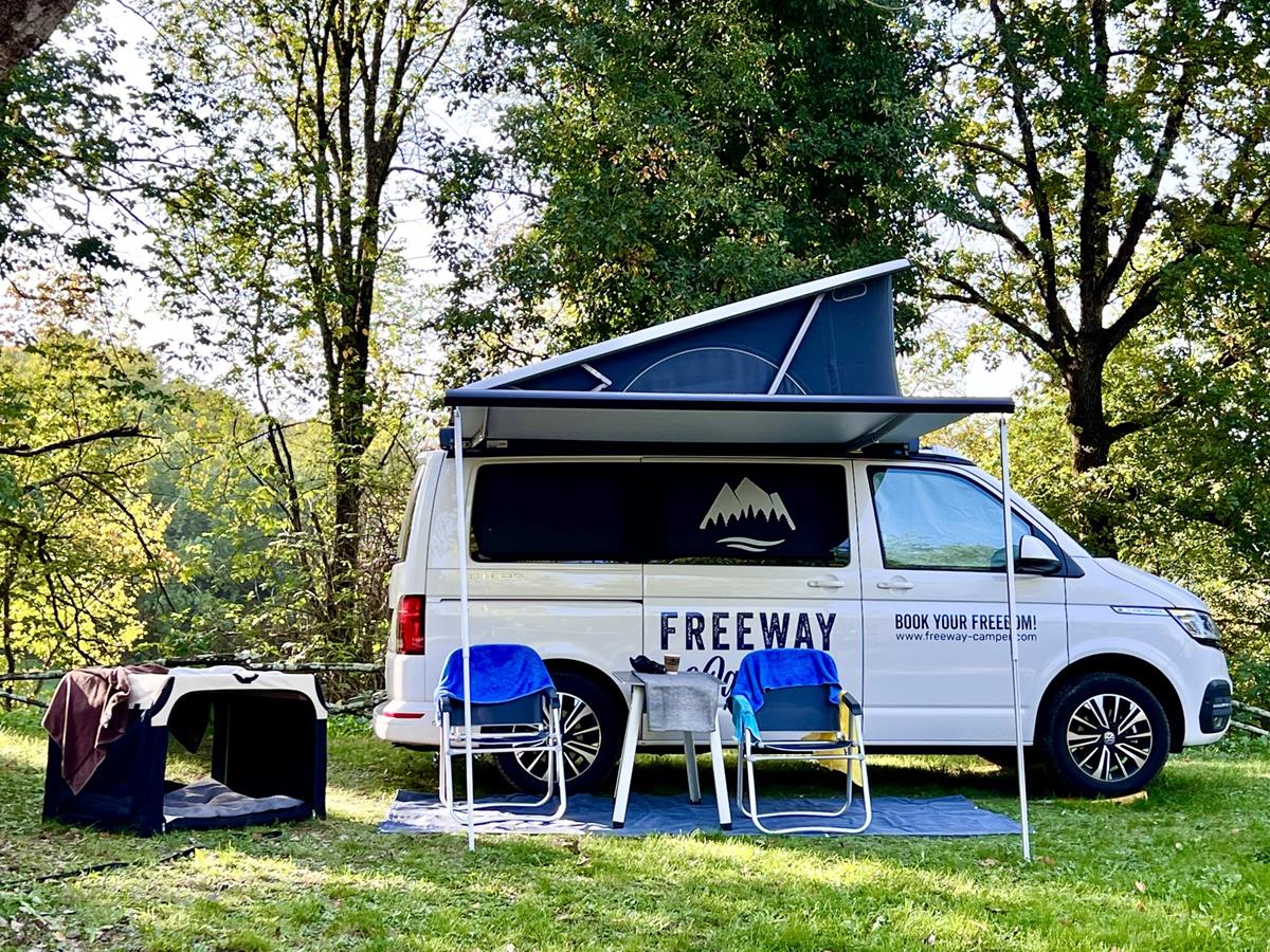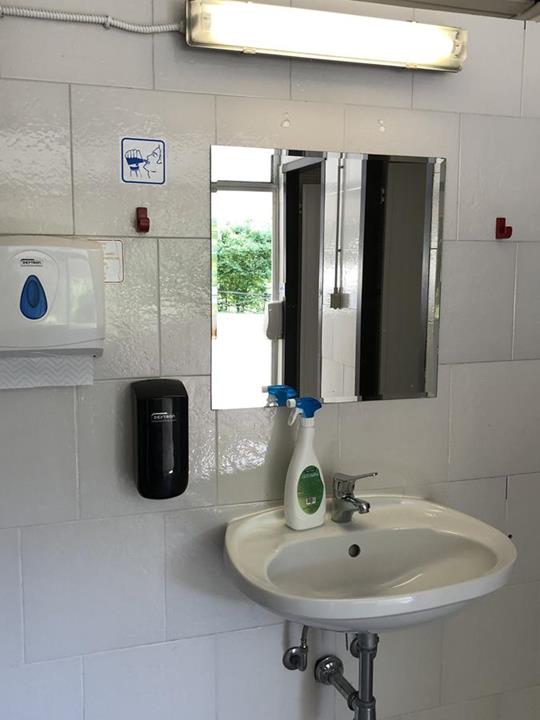 Piazzole in buona parte ombreggiate con allaccio elettrico (6 ampere). Due gruppi di servizi sanitari con acqua calda gratuita, toilette per disabili, congelatore, frigorifero, lavatrici e asciugatrici (a pagamento). Phon e ferro da stiro disponibili alla reception. Gli animali sono i benvenuti.
