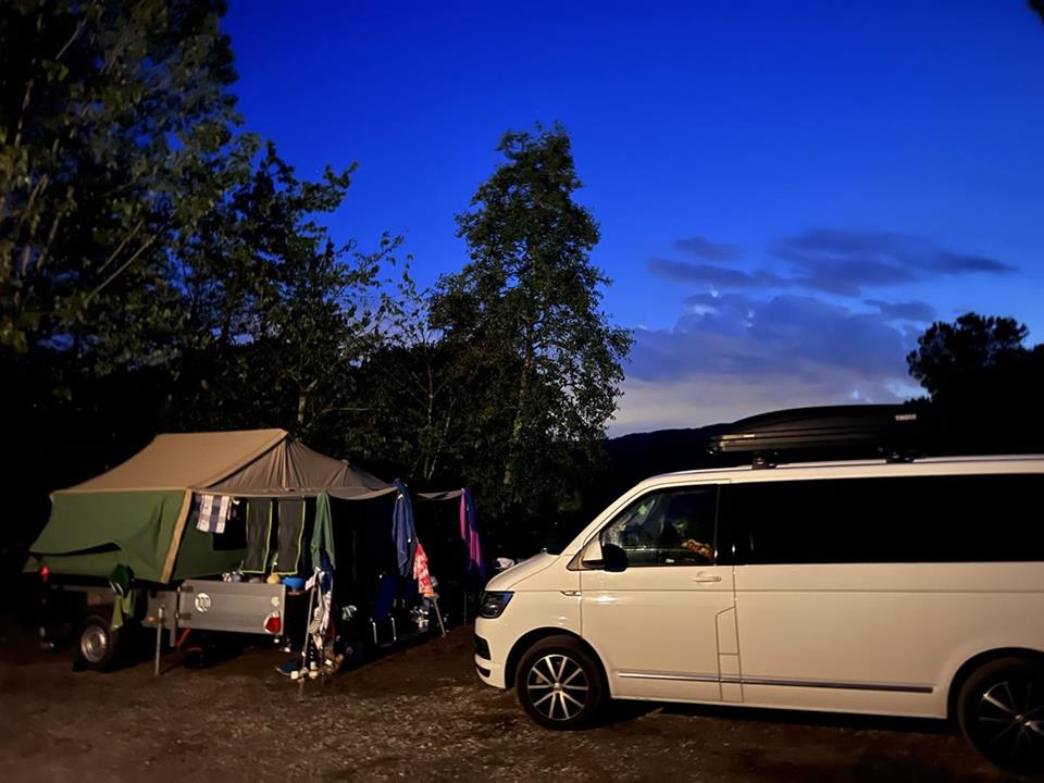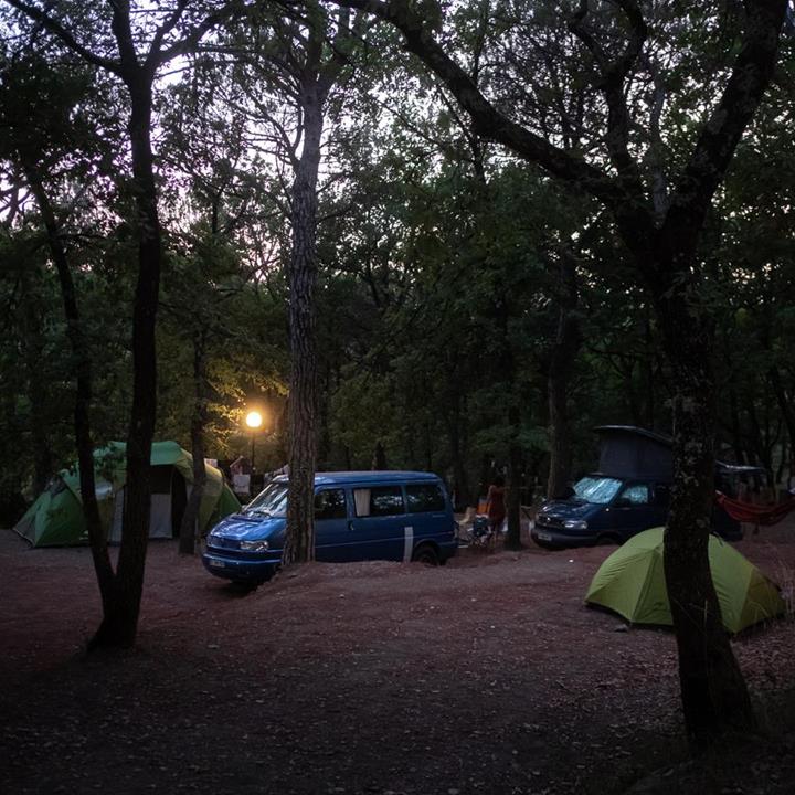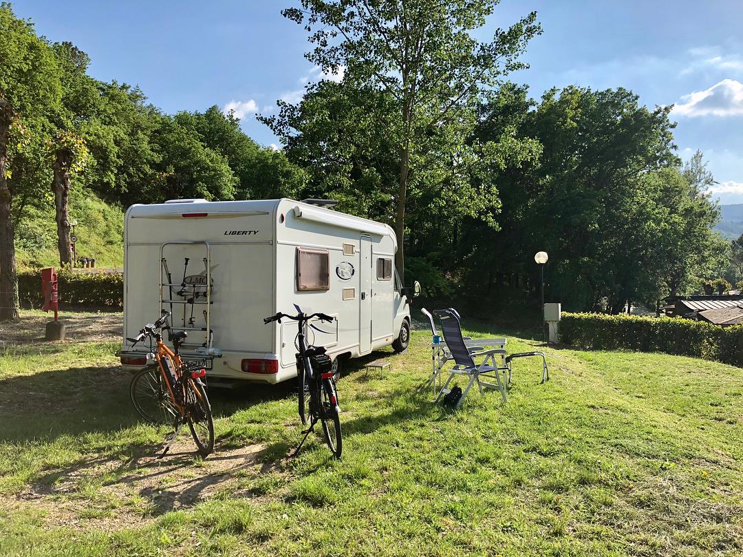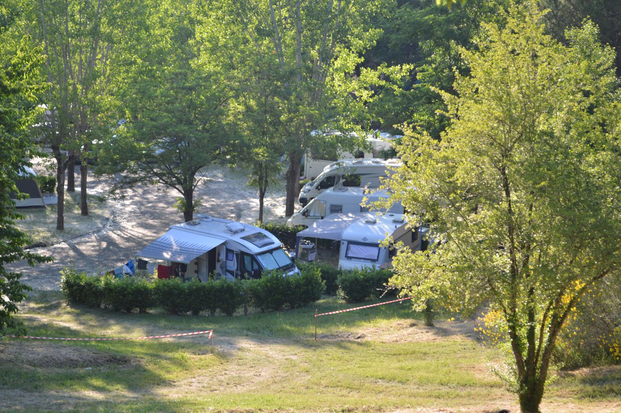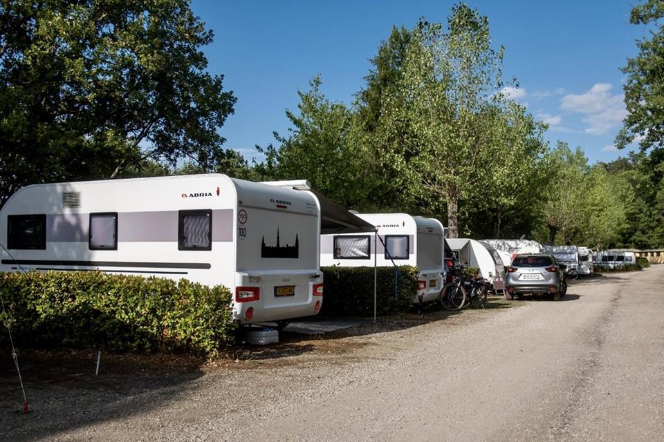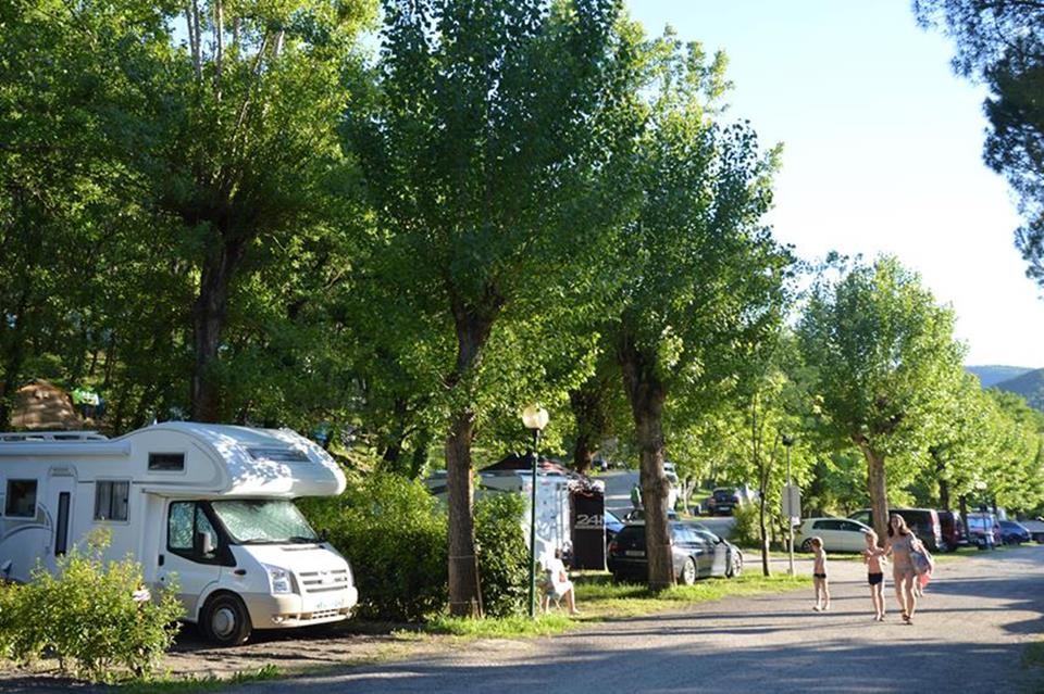 Piazzole in buona parte ombreggiate con allaccio elettrico (6 ampere) e parcheggio. Due gruppi di servizi sanitari con acqua calda gratuita, toilette per disabili, camper service, wc chimico, congelatore, frigorifero, lavatrici e asciugatrici (a pagamento). Phon e ferro da stiro disponibili alla reception. Gli animali sono i benvenuti.