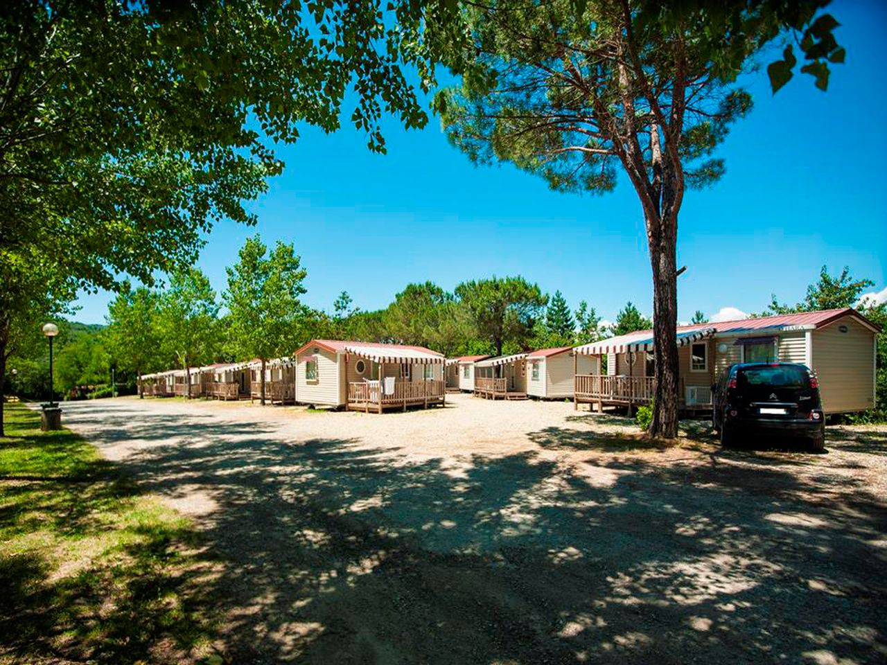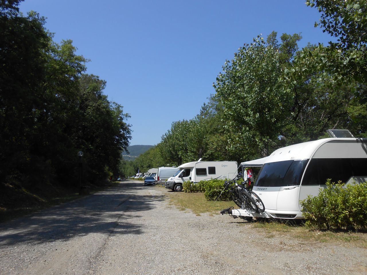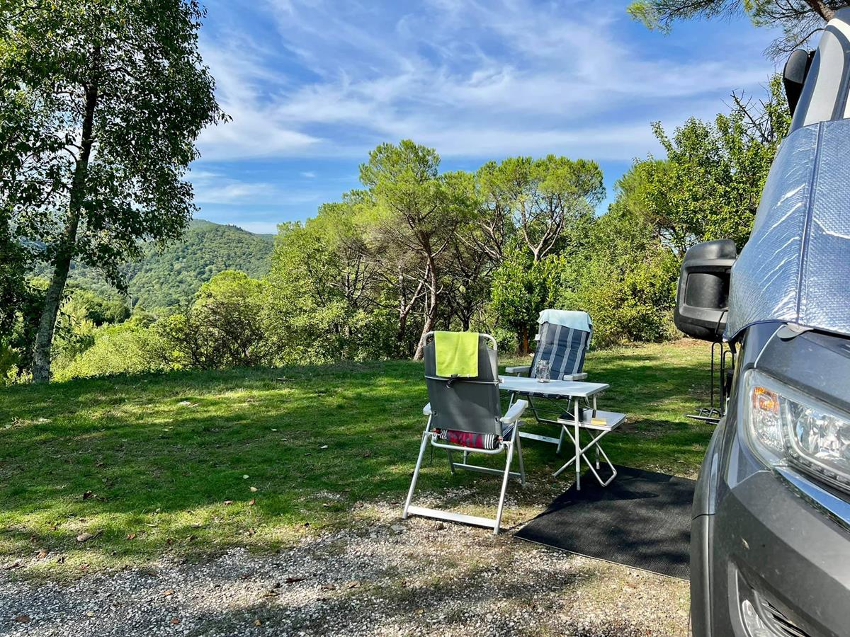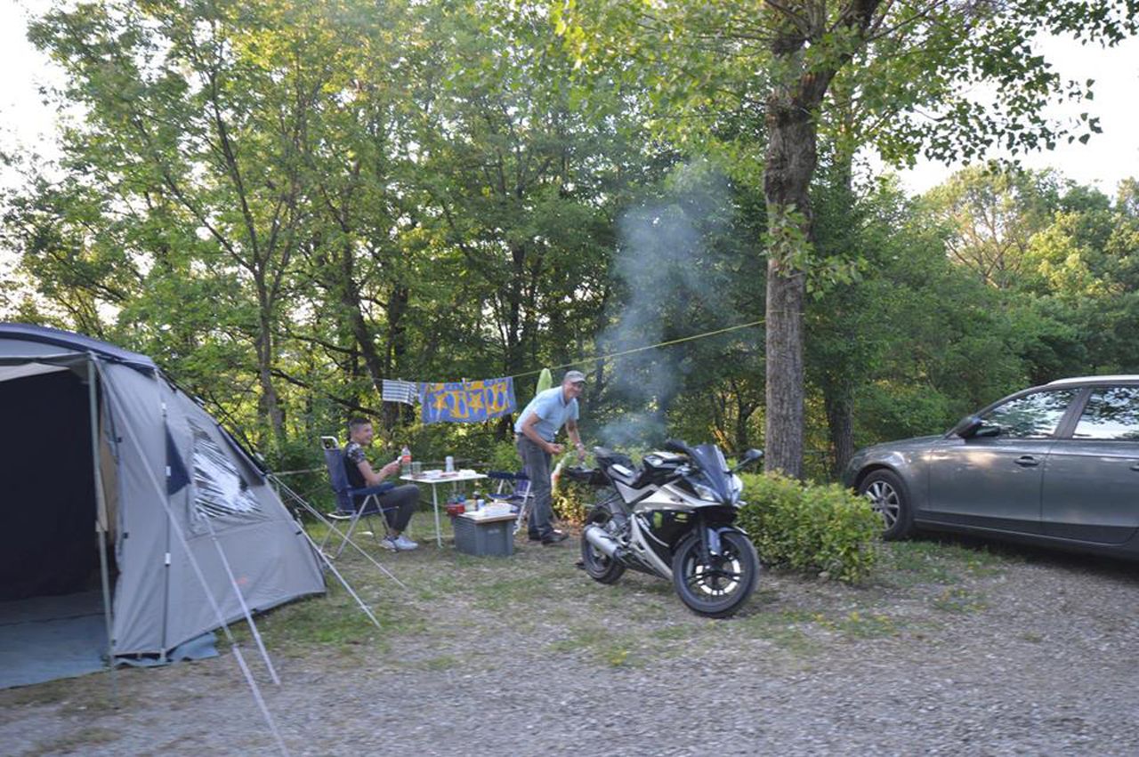 Piazzole in buona parte ombreggiate con allaccio elettrico (6 ampere) e parcheggio. Due gruppi di servizi sanitari con acqua calda gratuita, toilette per disabili, camper service, wc chimico, congelatore, frigorifero, lavatrici e asciugatrici (a pagamento). Phon e ferro da stiro disponibili alla reception. Gli animali sono i benvenuti.