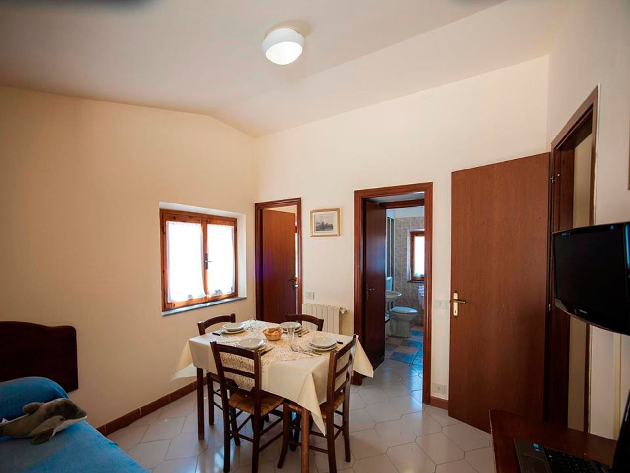 • Dotazioni incluse: TV, riscaldamento, aria condizionata, biancheria da bagno e da letto con cambio settimanale, set di cortesia, tavolo e sedie da esterno e parcheggio.