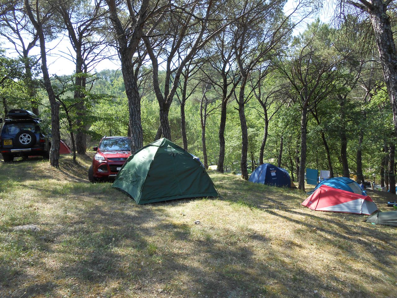 Piazzole in buona parte ombreggiate con allaccio elettrico (6 ampere) e parcheggio. Due gruppi di servizi sanitari con acqua calda gratuita, toilette per disabili, congelatore, frigorifero, lavatrici e asciugatrici (a pagamento). Phon e ferro da stiro disponibili alla reception. Gli animali sono i benvenuti.