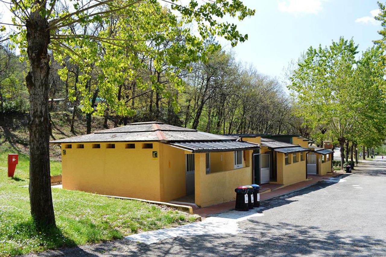 Piazzole in buona parte ombreggiate con allaccio elettrico (6 ampere). Due gruppi di servizi sanitari con acqua calda gratuita, toilette per disabili, camper service, wc chimico, congelatore, frigorifero, lavatrici e asciugatrici (a pagamento). Phon e ferro da stiro disponibili alla reception. Gli animali sono i benvenuti.
