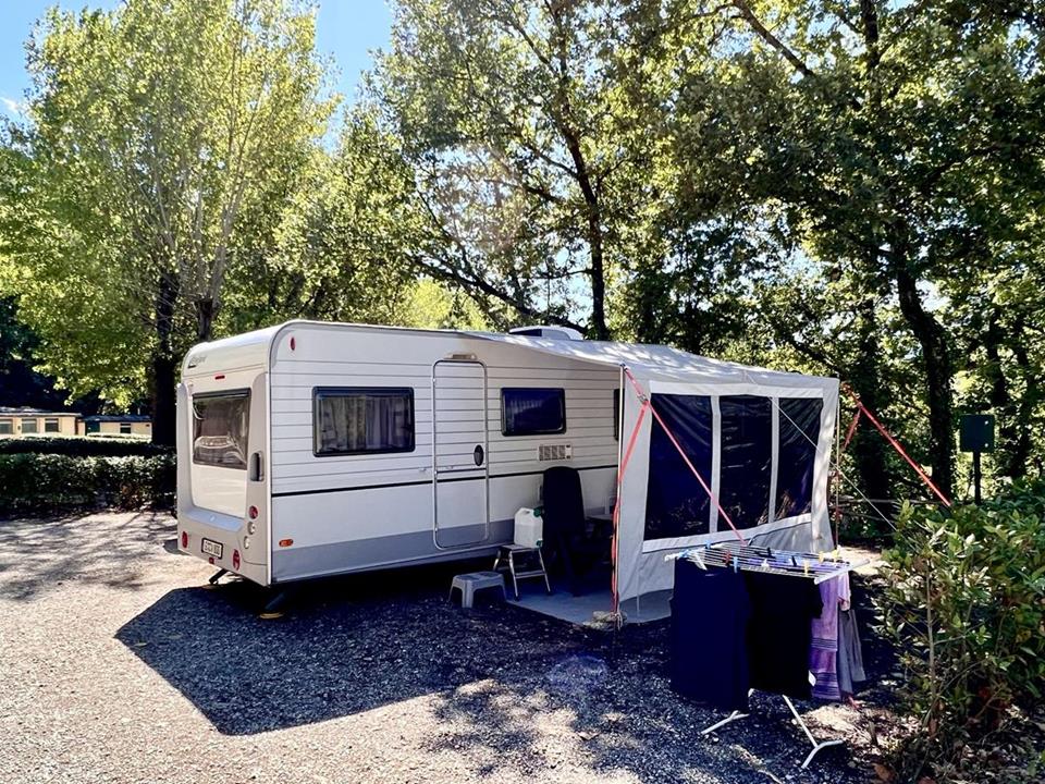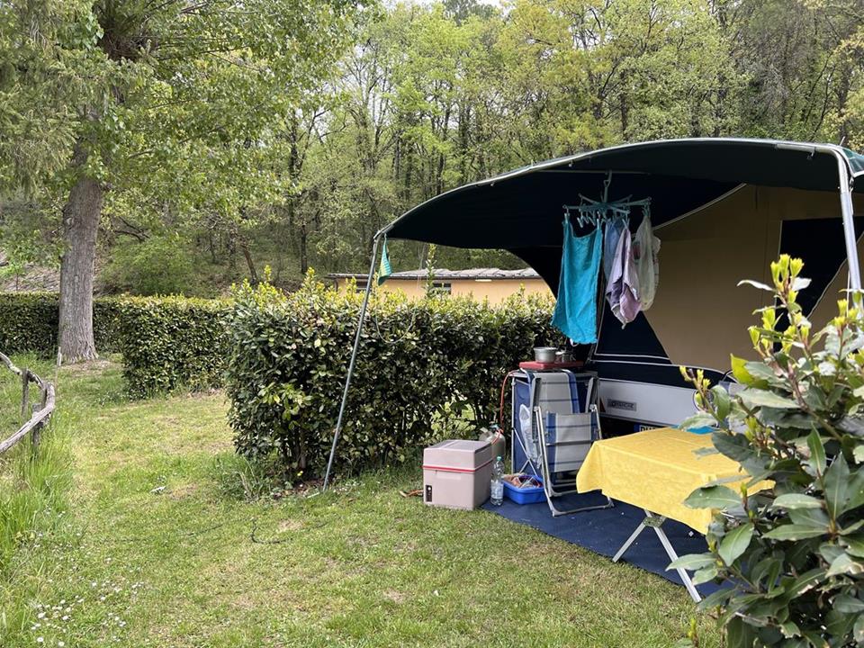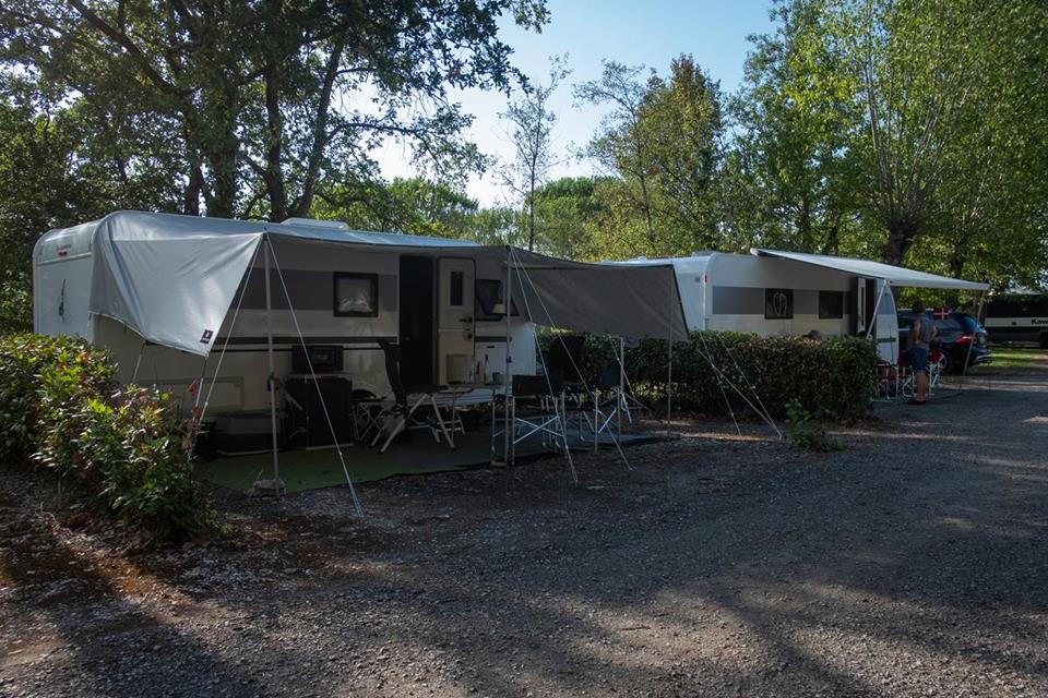 Piazzole in buona parte ombreggiate con allaccio elettrico (6 ampere). Due gruppi di servizi sanitari con acqua calda gratuita, congelatore, frigorifero, lavatrici e asciugatrici (a pagamento). Phon e ferro da stiro disponibili alla reception. Gli animali sono i benvenuti.